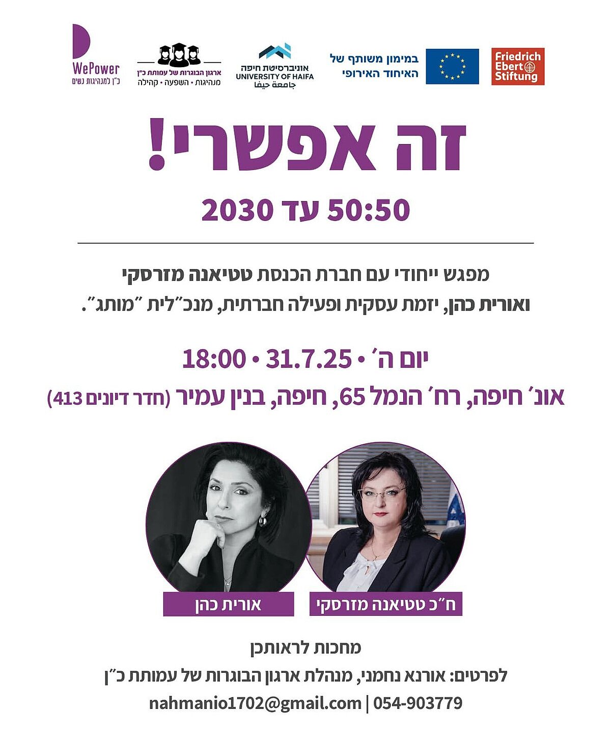 MK Tatiana Mazarsky und Orit Cohen, Unternehmerin und Sozialaktivistin sowie Geschäftsführerin der NGO Mutag, ein.
